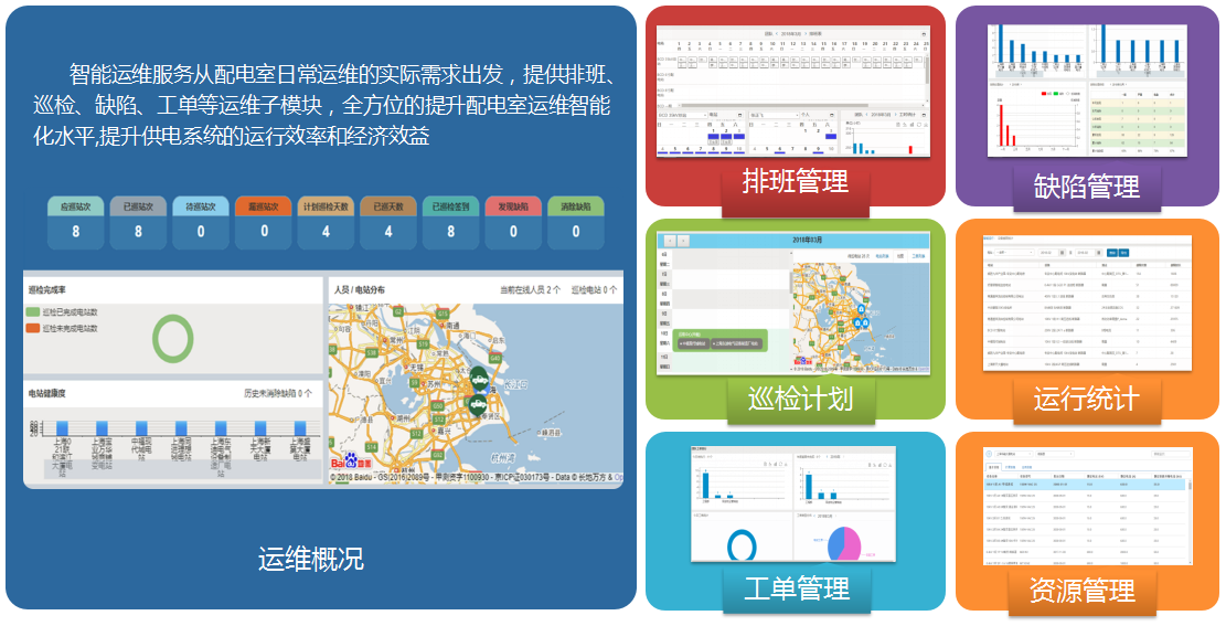 “智能运维”也叫“智能电力运维服务”,是传统电力运维结合“互联网+”技术以及共享思维而产生的新型电力管理模式,通过线上平台+线下运维团队+APP,构建新的运维服务支撑体系,有效提升变电站运行的安全、效率和经济性。